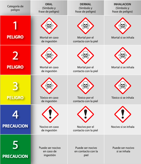 Categorías de peligro de toxicidad aguda.